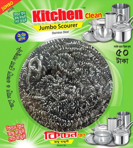Kitchen Clean Jumbo Scourer is ideal for maintaining the shine and cleanliness of your dishes. This Scourer, which is made of sturdy stainless steel, is soft on your dishes but effective in removing dirt and stains. It works perfectly on all kinds of items, including sturdy pots and pans and fragile glassware.